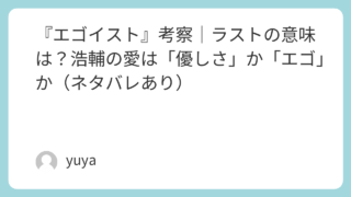 『エゴイスト』考察|ラストの意味は?浩輔の愛は「優しさ」か「エゴ」か(ネタバレあり) ※この記事は、検索キーワード「エゴイスト 映画 考察」で探している方向けに、作品の魅力と“愛とエゴの境界”を丁寧に読み解く内容です。途中から結末までのネタバレを含みます(見出しで区切っています)。映画『エゴイスト』とは(作品概要・キャスト・... 2026.01.05 Uncategorized