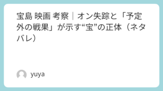 宝島 映画 考察|オン失踪と「予定外の戦果」が示す“宝”の正体(ネタバレ) 映画『宝島』は、いわゆる「戦後の沖縄」を“復興物語”としてなぞるのではなく、支配と貧困と暴力が日常に食い込んだ時間を、若者たちの友情と喪失で貫いていく作品です。上映時間は長い(約3時間)けれど、その長さは「積み重なる理不尽」を体感させるため... 2026.01.08 Uncategorized