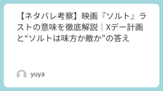 【ネタバレ考察】映画『ソルト』ラストの意味を徹底解説|Xデー計画と“ソルトは味方か敵か”の答え 映画『ソルト』は、「主人公は味方か、敵か?」という疑いを観客にも植え付けながら、息つく暇もなく逃走と反撃を畳みかけてくるスパイ・アクションです。CIA職員イヴリン・ソルトが“ロシアの二重スパイ”として追われるところから始まり、物語が進むほど... 2026.01.08 Uncategorized