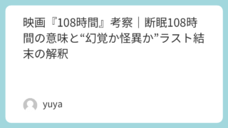 映画『108時間』考察|断眠108時間の意味と“幻覚か怪異か”ラスト結末の解釈 「108時間、眠らずに稽古を続けたら、人はどこまで“現実”を保てるのか。」映画『108時間』は、前衛舞台の役作りのために断眠108時間という極限状態に挑む女優たちが、廃・精神病院の閉鎖空間で少しずつ壊れていくサスペンス/ホラーです。寝不足が... 2026.01.21 Uncategorized