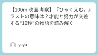 【100m 映画 考察】『ひゃくえむ。』ラストの意味は?才能と努力が交差する“10秒”の物語を読み解く 100m走――たった10秒前後で、勝敗も評価も「すべて」が決まってしまう残酷な世界。映画『ひゃくえむ。』は、その短すぎる距離に人生を賭けるスプリンターたちの情熱と狂気を、真正面から描いた作品です。生まれつき速い“才能型”のトガシと、走ること... 2026.01.25 Uncategorized