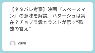 【ネタバレ考察】映画『スペースマン』の意味を解説|ハヌーシュは実在?チョプラ雲とラストが示す“孤独の答え” Netflix映画『スペースマン』は、宇宙飛行士ヤクブが未知の粒子雲“チョプラ雲”へ向かう――というSFの装いをしながら、実は「孤独」「罪悪感」「夫婦のすれ違い」をえぐるほど静かに描く内面劇です。船内に現れるクモのような存在ハヌーシュは、救... 2026.01.27 Uncategorized