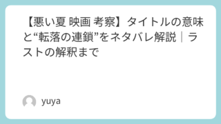 【悪い夏 映画 考察】タイトルの意味と“転落の連鎖”をネタバレ解説|ラストの解釈まで 映画『悪い夏』は、市役所の生活福祉課という“正しさ”が求められる現場を舞台に、ひとつの小さな踏み込みが取り返しのつかない転落へつながっていく社会派サスペンスです。登場人物のほぼ全員がどこかで線を越え、被害者と加害者の境界さえ揺らいでいく——... 2026.02.02 Uncategorized