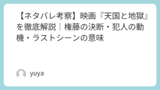【ネタバレ考察】映画『天国と地獄』を徹底解説|権藤の決断・犯人の動機・ラストシーンの意味 黒澤明監督の名作『天国と地獄』は、誘拐サスペンスとしての緊張感だけでなく、「正しさ」と「現実」のはざまで人はどう決断するのかを突きつける作品です。本記事では、物語の核心である権藤の選択、犯人・竹内銀次郎の歪んだ動機、そして観る者の解釈が分か... 2026.02.14 Uncategorized