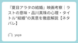 『夏目アラタの結婚』映画考察|ラストの意味・品川真珠の心理・タイトル“結婚”の真意を徹底解説【ネタバレ】 死刑囚に“結婚”を申し込む――。この強烈な設定だけでも異様なのに、『夏目アラタの結婚』は観れば観るほど、単なるサスペンスでは片づけられない作品です。ラストは救いなのか、それとも新たな呪いなのか。品川真珠は本当に「怪物」だったのか。夏目アラタ... 2026.02.14 Uncategorized