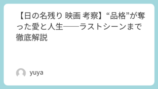 【日の名残り 映画 考察】“品格”が奪った愛と人生──ラストシーンまで徹底解説 アンソニー・ホプキンス主演の映画『日の名残り』は、激しい展開ではなく、抑え込まれた感情と静かな後悔で心をえぐる名作です。本記事では、スティーブンスが信じた「品格」の正体、ミス・ケントンとのすれ違い、ダーリントン卿をめぐる歴史的背景、そして余... 2026.02.14 Uncategorized
