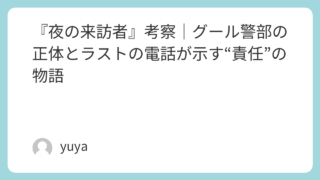 『夜の来訪者』考察|グール警部の正体とラストの電話が示す“責任”の物語 華やかな祝宴の席に、突然現れる“来訪者”。映画『夜の来訪者』は、密室ミステリーの顔をしながら、観る者の心にじわじわ刺さる「社会責任」の物語です。誰かが明確に悪いわけではない。むしろ登場人物たちは、どこまでも“普通の正しさ”をまとっている――... 2026.03.03 Uncategorized