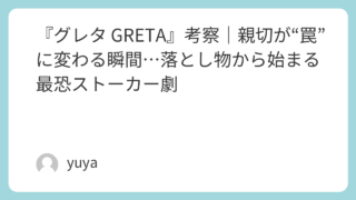 『グレタ GRETA』考察|親切が“罠”に変わる瞬間…落とし物から始まる最恐ストーカー劇 地下鉄で拾った落とし物のバッグ。持ち主に直接返して「ありがとう」と微笑まれ、コーヒーまでご馳走になる——そんな小さな親切が、まさか“逃げられない恐怖”の入口になるなんて、誰が想像するでしょうか。映画『グレタ GRETA』は、ニール・ジョーダ... 2026.03.03 Uncategorized