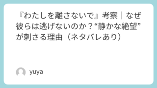 『わたしを離さないで』考察|なぜ彼らは逃げないのか?“静かな絶望”が刺さる理由(ネタバレあり) もしこの映画を観終えたあと、胸に残ったのが「涙」よりも「言葉にならない違和感」だったなら、その感覚はきっと正しい。『わたしを離さないで』は、ショッキングな演出で観客を殴るタイプの作品ではありません。むしろ、穏やかな日常の中に“当たり前の残酷... 2026.03.03 Uncategorized