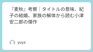 『麦秋』考察|タイトルの意味、紀子の結婚、家族の解体から読む小津安二郎の傑作 小津安二郎監督の映画『麦秋』は、一見するとひとりの女性の結婚をめぐる穏やかなホームドラマです。しかし本作の魅力は、それだけではありません。紀子の結婚という出来事を通して、家族の形が少しずつ変わっていく切なさや、戦後の価値観の揺らぎ、そして人... 2026.03.24 Uncategorized