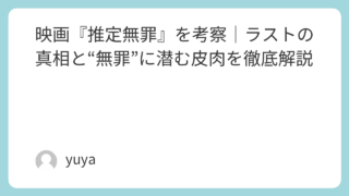 映画『推定無罪』を考察|ラストの真相と“無罪”に潜む皮肉を徹底解説 法廷サスペンスの名作として知られる映画『推定無罪』。本作は、殺人事件の真相を追うスリリングな展開だけでなく、登場人物たちの欲望や嫉妬、夫婦関係の歪みまで鋭く描いた重厚な作品です。特に印象的なのは、タイトルにもなっている「推定無罪」という言葉... 2026.03.24 Uncategorized