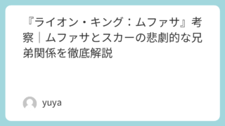 『ライオン・キング:ムファサ』考察|ムファサとスカーの悲劇的な兄弟関係を徹底解説 『ライオン・キング:ムファサ』は、偉大な王として知られるムファサの若き日々と、のちにスカーとなるタカとの関係を描いた前日譚です。本作は単なる過去編ではなく、『ライオン・キング』で描かれた兄弟の悲劇に新たな意味を与える作品として、多くの注目を... 2026.03.24 Uncategorized