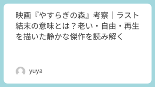 映画『めがね』を考察|“たそがれる”とは何か?ラストの意味やサクラの正体を解説 映画『めがね』は、派手な展開がある作品ではありません。けれど、海辺の静かな風景や何気ない食卓の時間、そして登場人物たちのゆるやかな空気に触れているうちに、不思議と心がほぐれていく作品です。ただ一方で、「たそがれるってどういう意味?」「サクラ... 2026.03.24 Uncategorized