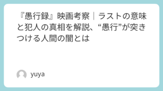 『愚行録』映画考察|ラストの意味と犯人の真相を解説、“愚行”が突きつける人間の闇とは 映画『愚行録』は、田向一家殺害事件の真相を追うミステリーでありながら、単なる犯人探しでは終わらない重厚な人間ドラマです。関係者たちの証言が積み重なるたびに、被害者一家の知られざる裏の顔と、語る側の嫉妬や見栄、悪意までもが浮かび上がっていきま... 2026.04.01 Uncategorized