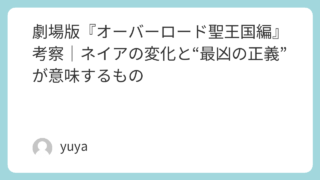 劇場版『オーバーロード聖王国編』考察|ネイアの変化と“最凶の正義”が意味するもの 劇場版『オーバーロード聖王国編』は、シリーズの中でもとりわけ「正義とは何か」「人はなぜ強者を信仰するのか」が色濃く描かれたエピソードです。聖王国を襲う未曾有の危機、そこで救世主のように現れるアインズ、そして彼に強く心を動かされていくネイア・... 2026.04.01 Uncategorized