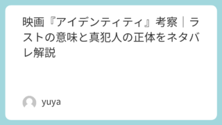 映画『アイデンティティ』考察|ラストの意味と真犯人の正体をネタバレ解説 2003年公開のサスペンス映画『アイデンティティ』は、密室ミステリーの面白さと、終盤で一気にひっくり返る衝撃の展開で今なお高く評価されている作品です。モーテルに閉じ込められた男女が次々と命を落としていく物語は、一見すると王道の犯人探しに見え... 2026.04.01 Uncategorized