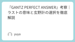 『GANTZ PERFECT ANSWER』考察|ラストの意味と玄野計の選択を徹底解説 『GANTZ PERFECT ANSWER』は、前作のSFアクション要素を引き継ぎながらも、より強く“人間の選択”と“犠牲”を描いた作品です。とくにラストシーンは、「結局どういう意味だったの?」「GANTZの正体は何だったの?」と疑問を抱い... 2026.04.01 Uncategorized