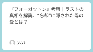 『フォーガットン』考察|ラストの真相を解説、“忘却”に隠された母の愛とは? 映画『フォーガットン』は、愛する息子の存在そのものが世界から消えていくという、強烈な不安を描いたサスペンス作品です。前半は心理スリラーとして観る者を翻弄しながら、後半では思いもよらない真相へと突き進んでいきます。本記事では、『フォーガットン... 2026.04.01 Uncategorized