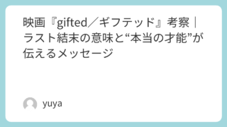 映画『gifted/ギフテッド』考察|ラスト結末の意味と“本当の才能”が伝えるメッセージ 映画『gifted/ギフテッド』は、天才的な数学の才能を持つ少女メアリーと、彼女を育てる叔父フランクの絆を描いた感動作です。しかし本作の魅力は、単なる“天才少女の物語”にとどまりません。才能を伸ばすことは本当に幸せにつながるのか、子どもにと... 2026.04.01 Uncategorized