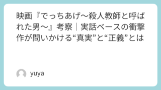 映画『でっちあげ〜殺人教師と呼ばれた男〜』考察|実話ベースの衝撃作が問いかける“真実”と“正義”とは 映画『でっちあげ〜殺人教師と呼ばれた男〜』は、ひとりの教師が“殺人教師”という強烈なレッテルを貼られ、社会から断罪されていく過程を描いた衝撃作です。実話をベースにした本作は、単なる事件の再現にとどまらず、「真実は誰が作るのか」「正義とは本当... 2026.04.09 Uncategorized