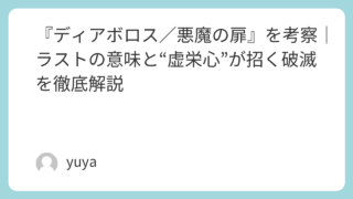 『ディアボロス/悪魔の扉』を考察|ラストの意味と“虚栄心”が招く破滅を徹底解説 映画『ディアボロス/悪魔の扉』は、法廷サスペンスの緊張感と悪魔をめぐる宗教的モチーフが融合した、非常に印象深い作品です。アル・パチーノ演じるジョン・ミルトンの妖しい存在感、そしてキアヌ・リーブス演じる主人公ケヴィンが成功の階段を上るほどに追... 2026.04.09 Uncategorized