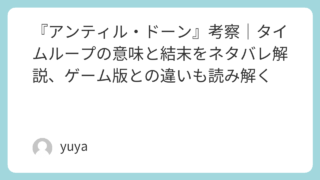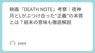 映画『DEATH NOTE』考察|夜神月とLがぶつけ合った“正義”の本質とは?結末の意味も徹底解説 映画『DEATH NOTE』は、ただのサスペンス映画ではありません。“名前を書かれた人間は死ぬ”という衝撃的な設定の中で描かれるのは、夜神月とLの頭脳戦だけでなく、正義とは何か、誰かを裁く資格は誰にあるのかという重いテーマです。特に実写映画... 2026.04.09 Uncategorized