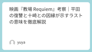 映画『教場 Requiem』考察|平田の復讐と十崎との因縁が示すラストの意味を徹底解説 映画『教場 Requiem』は、風間公親という存在の冷徹さと哀しさが、これまで以上に色濃く描かれた作品です。第205期生の卒業をめぐる緊迫した展開の中で、氏原の裏切り、平田和道の復讐、そして十崎波琉との長い因縁が複雑に絡み合い、物語は単なる... 2026.04.14 Uncategorized