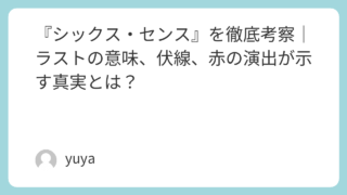 『シックス・センス』を徹底考察|ラストの意味、伏線、赤の演出が示す真実とは? M・ナイト・シャマラン監督の代表作『シックス・センス』は、映画史に残るどんでん返しで知られる名作です。しかし本作の魅力は、単なる“驚きのラスト”だけではありません。物語全体に張り巡らされた巧妙な伏線、印象的に使われる「赤」や「白い息」の演出... 2026.04.14 Uncategorized