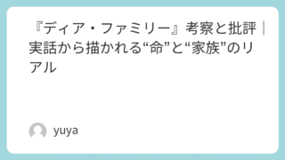『ディア・ファミリー』考察と批評|実話から描かれる“命”と“家族”のリアル 2024年公開の映画『ディア・ファミリー』は、実話をベースにした感動作として大きな話題を呼びました。本作は、人工心臓開発という命の最前線に挑んだ家族の物語を描いており、医療・人間ドラマ・家族愛が複雑に絡み合う作品です。今回は、本作の魅力や課... 2025.09.30 Uncategorized