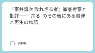『室井慎次 敗れざる者』徹底考察と批評──“踊る”のその後にある贖罪と再生の物語 1998年公開の映画『踊る大捜査線 THE MOVIE』で印象的な存在感を放って以来、室井慎次という人物は“踊る”シリーズの中でも異質で、静かな魅力を持つキャラクターとして愛されてきました。そんな室井が、時を経て主役として再びスクリーンに登... 2025.09.30 Uncategorized