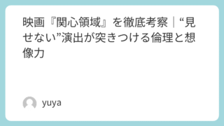 映画『関心領域』を徹底考察|“見せない”演出が突きつける倫理と想像力 映画『関心領域(The Zone of Interest)』は、見る者に深い問いを突きつける異色の作品です。一見、静謐で日常的な描写の中に、歴史的暴力と人間の無関心が交錯する、強烈な批評性を孕んでいます。本作を観た観客の多くが、その「見えな... 2025.09.30 Uncategorized