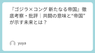 『ゴジラ×コング 新たなる帝国』徹底考察・批評|共闘の意味と“帝国”が示す未来とは? 2024年に公開された『ゴジラ×コング 新たなる帝国』は、レジェンダリー・ピクチャーズが展開するモンスター・ヴァースの最新作として、大きな話題を呼びました。ゴジラとコングという二大怪獣が再びスクリーンに登場するこの作品は、単なる対決映画の枠... 2025.09.30 Uncategorized