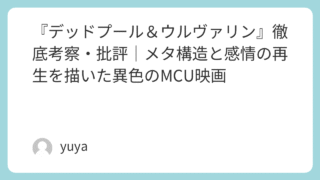 『デッドプール&ウルヴァリン』徹底考察・批評|メタ構造と感情の再生を描いた異色のMCU映画 2025年、MCUフェーズの中でも異色の存在として登場した『デッドプール&ウルヴァリン』。R指定の過激な笑いと暴力、そして旧X-MENユニバースとの融合という前代未聞のチャレンジを成し遂げたこの作品は、単なるアクションやギャグの集合体ではな... 2025.09.30 Uncategorized