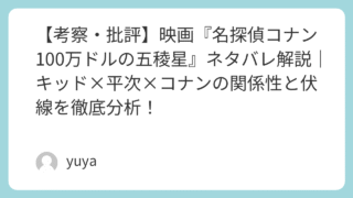 【考察・批評】映画『名探偵コナン 100万ドルの五稜星』ネタバレ解説|キッド×平次×コナンの関係性と伏線を徹底分析! 2024年公開の劇場版『名探偵コナン 100万ドルの五稜星(みちしるべ)』は、怪盗キッドと服部平次が共演することで話題となりました。北海道・函館を舞台にしたスリリングな展開や、シリーズの核心に迫るような伏線回収など、ファンならずとも注目すべ... 2025.09.30 Uncategorized