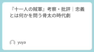 『十一人の賊軍』考察・批評|忠義とは何かを問う骨太の時代劇 近年、歴史を新たな視点で捉え直す映画が増えてきましたが、『十一人の賊軍』はまさにその代表格ともいえる作品です。本作は、戊辰戦争末期に実在した“賊軍”とされた武士たちに焦点を当て、忠義や正義とは何かを観客に問いかける骨太な歴史劇です。本記事で... 2025.09.30 Uncategorized
