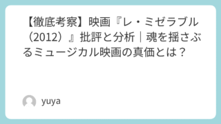 【徹底考察】映画『レ・ミゼラブル(2012)』批評と分析|魂を揺さぶるミュージカル映画の真価とは? 2012年に公開された映画『レ・ミゼラブル』は、ヴィクトル・ユゴーの名作小説を基にしたミュージカルを原作とし、映画としての新たな表現に挑んだ意欲作です。本作は、ジャン・バルジャンという一人の男の贖罪と愛、そして民衆の苦しみと革命の熱狂を通じ... 2025.09.30 Uncategorized