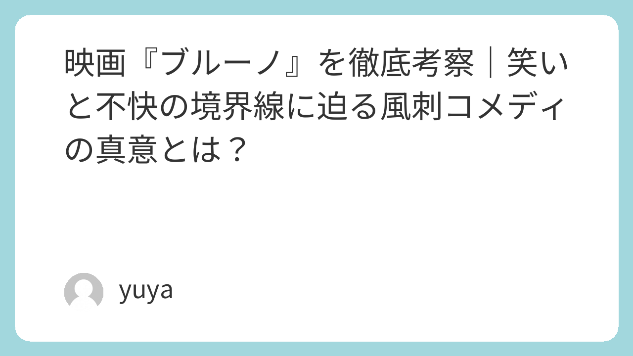 『ブルーノ』は一見過激で下品なコメディのようでいて、実は極めて政治的で社会的な意図を持った作品です。観客の道徳観・偏見・許容範囲によって評価が分かれる「鏡」のような映画であり、観る側に問いかけを投げかけ続けます。