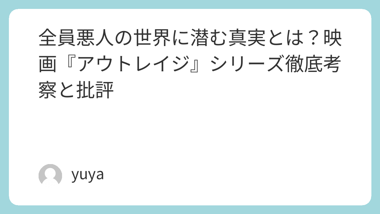『アウトレイジ』は、暴力と権力の構造を通して人間の本質を鋭く描く、唯一無二の社会派映画である。 観る者に「なぜ人は裏切るのか」「暴力の果てに何が残るのか」といった問いを投げかけ続けてくる――そんな作品だからこそ、何度でも考察と批評に値するのです。