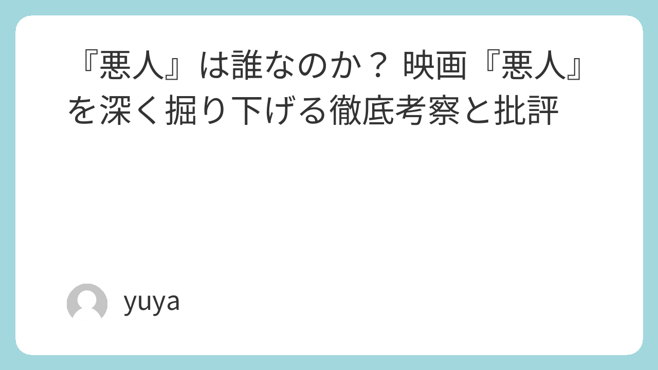 映画『悪人』は、単なる殺人事件を描いた映画ではありません。むしろ、「人は何をもって“悪人”となるのか?」という普遍的なテーマを通して、私たち自身の内面や社会への視点を深く問い直させます。