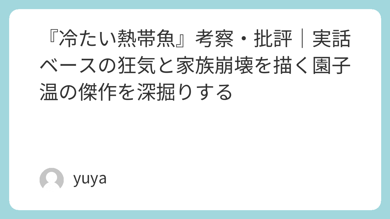 映画『冷たい熱帯魚』(2010年/監督:園子温)は、ただのバイオレンス映画ではありません。実在の事件をベースにしながら、倫理、家族、そして人間の本性に深く切り込む異様な傑作として、多くの映画ファンの記憶に強烈な印象を残しました。本記事では、園子温監督の手によって再構築された世界観を、考察と批評の視点から掘り下げていきます。