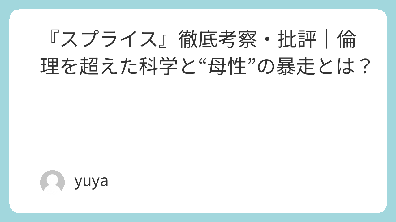 『スプライス』は、倫理を問うSFホラーでありながら、人間の愛情・責任・欲望といった普遍的なテーマを抉り出す心理劇でもあります。ドレンという存在を通して描かれる“創造と破壊の物語”は、私たちが「何かを生み出す」ことの意味を再考させる、極めて挑戦的で示唆に富んだ作品です。不快でありながら目を離せない——そんな稀有な体験を味わえる一本です。