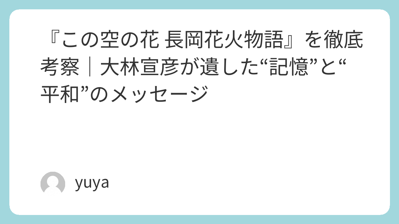 また、“郷土愛”というテーマも強く、長岡という地域の歴史や文化(とりわけ花火)を通して、「個人が歴史にどう向き合うか」「地域がどのように記憶を未来へ繋げるか」が描かれます。震災後の日本において、このような視点は極めてタイムリーであり、現代へのメッセージとしての力を持っています。