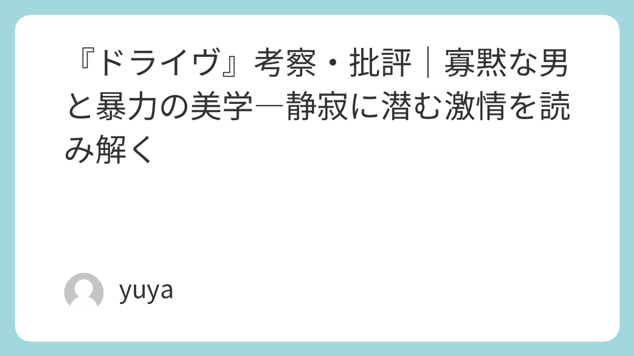 『ドライヴ』考察・批評|寡黙な男と暴力の美学―静寂に潜む激情を読み解く
