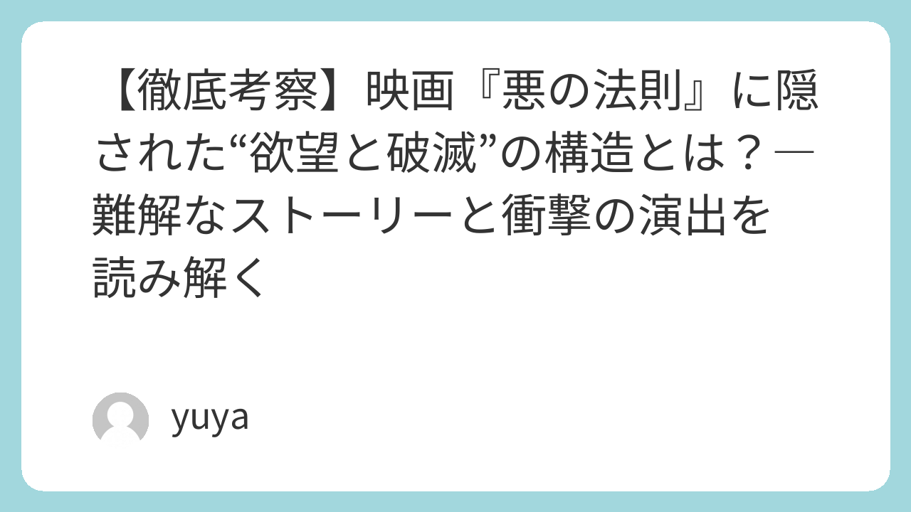『悪の法則』は、明快なカタルシスも救いもない物語ですが、その分、現代社会に生きる私たちの選択や倫理、欲望について深く問いかける作品です。