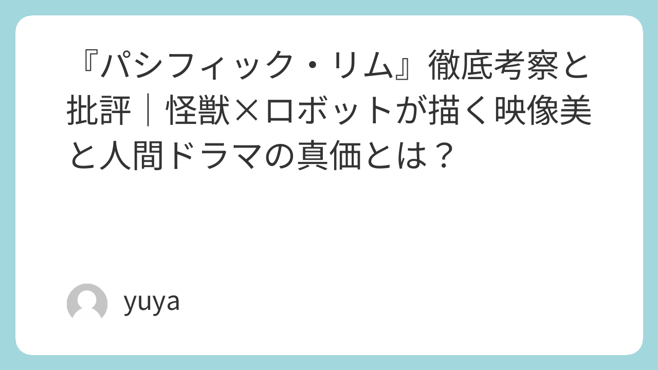 『パシフィック・リム』は、ハリウッド作品でありながら、日本の怪獣文化やロボットアニメに対する敬意を存分に表現した、稀有な映画です。映像美、アクション、そして人間ドラマとテーマ性のバランスにおいて、多くの観客にとって印象的な一本となりました。
