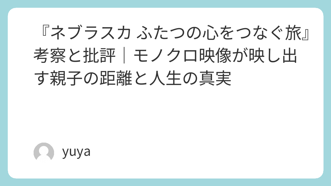 『ネブラスカ ふたつの心をつなぐ旅』は、静かな語り口と美しいモノクロ映像で、老い、家族、記憶、そして人生の幻想と現実を見つめる深い作品です。
