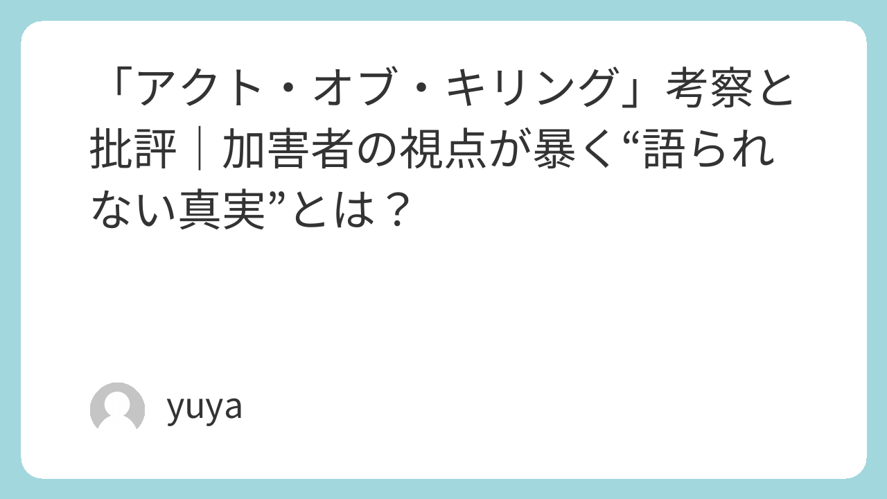 ドキュメンタリー映画『アクト・オブ・キリング』(監督:ジョシュア・オッペンハイマー)は、1965年のインドネシアで起きた共産主義者大量虐殺事件を題材としながらも、従来の「加害=悪/被害=善」という二項対立を超えた異様なアプローチで世界中に衝撃を与えました。