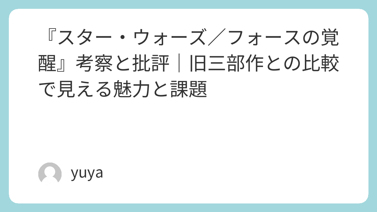 『フォースの覚醒』は、スター・ウォーズの世界を新世代に引き継ぐための「橋渡し作品」としての役割を果たしています。確かにリスク回避的で、旧作に頼る部分が目立ちますが、その分、多くのファンが安心して受け入れられる作りになっていたことも事実です。評価が分かれるのは当然であり、それこそが本作が議論を呼ぶ所以でもあります。