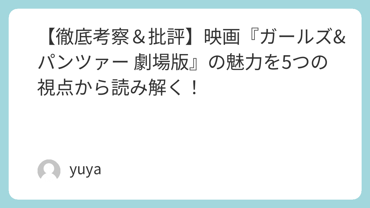 2015年に公開された『ガールズ&パンツァー 劇場版』は、TVシリーズからの流れを汲みつつ、映画ならではのスケールと完成度で多くのファンを魅了しました。本作は単なる「萌え×ミリタリー」作品ではなく、ストーリーの構成力、キャラクター描写、戦闘演出、そして社会的背景のメタファーまで、多層的な魅力を持つ作品です。本記事では、その深みを「考察」と「批評」の視点から掘り下げていきます。