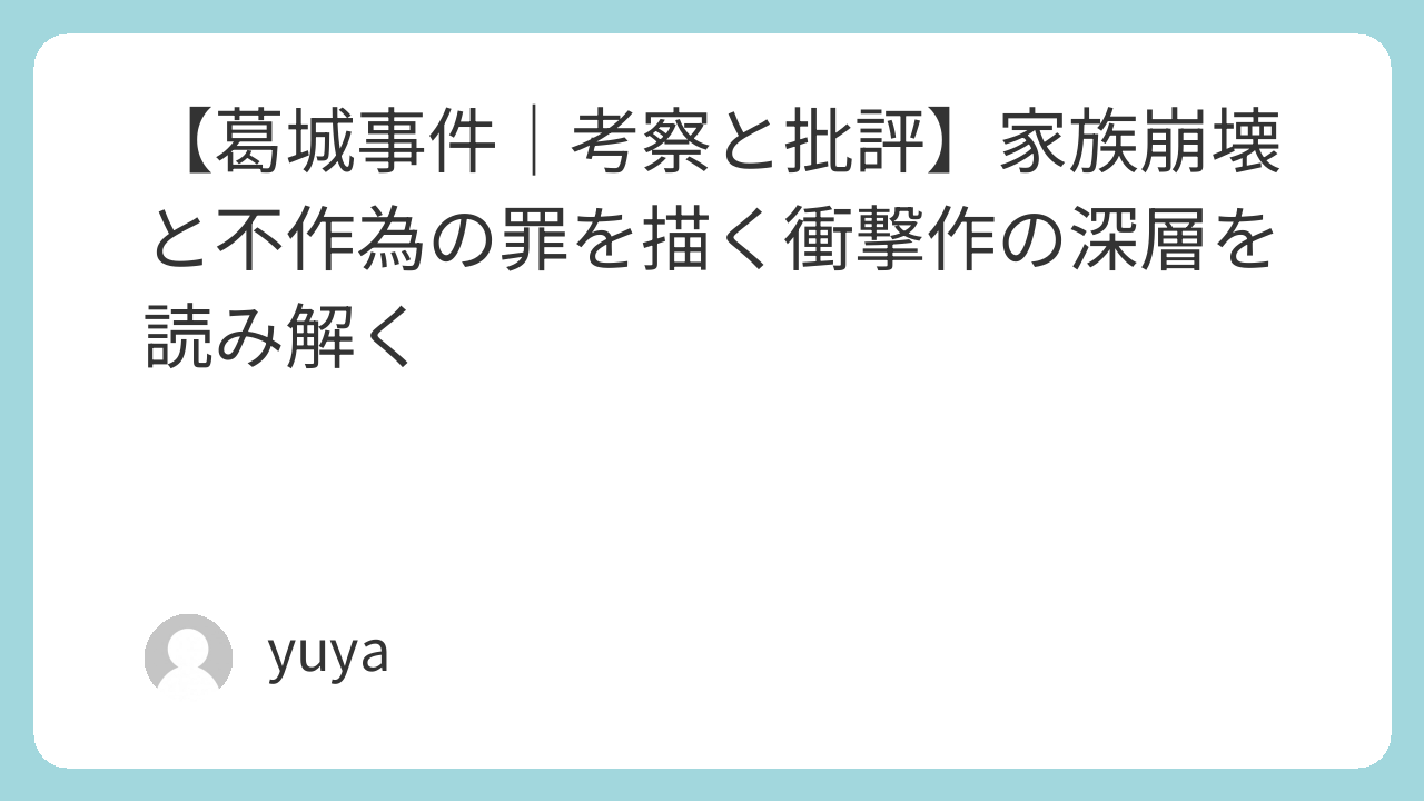ただし、特定の事件を描くのではなく、複数の現実を織り交ぜて「普遍化」している点が重要です。これにより、「この家族は特殊ではない」「この加害者はどこにでもいるかもしれない」という不安を生み出しています。